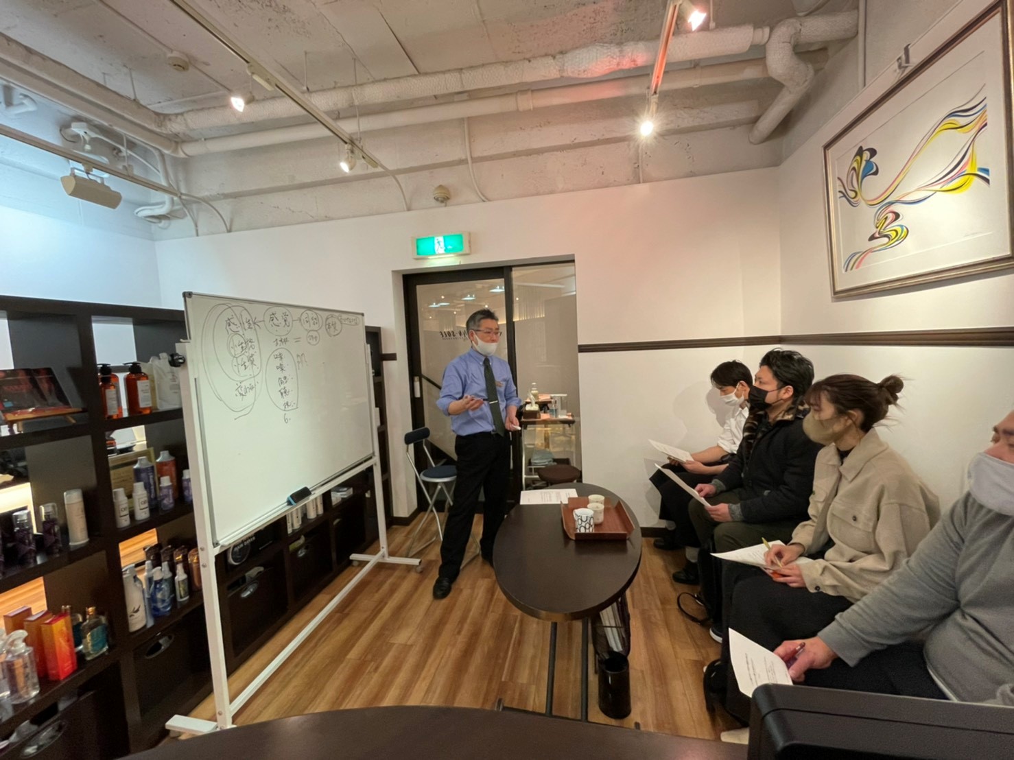また技術部会では、杉田講師・葛城講師による若手スタイリストたちにカットの指導をしていただきました。