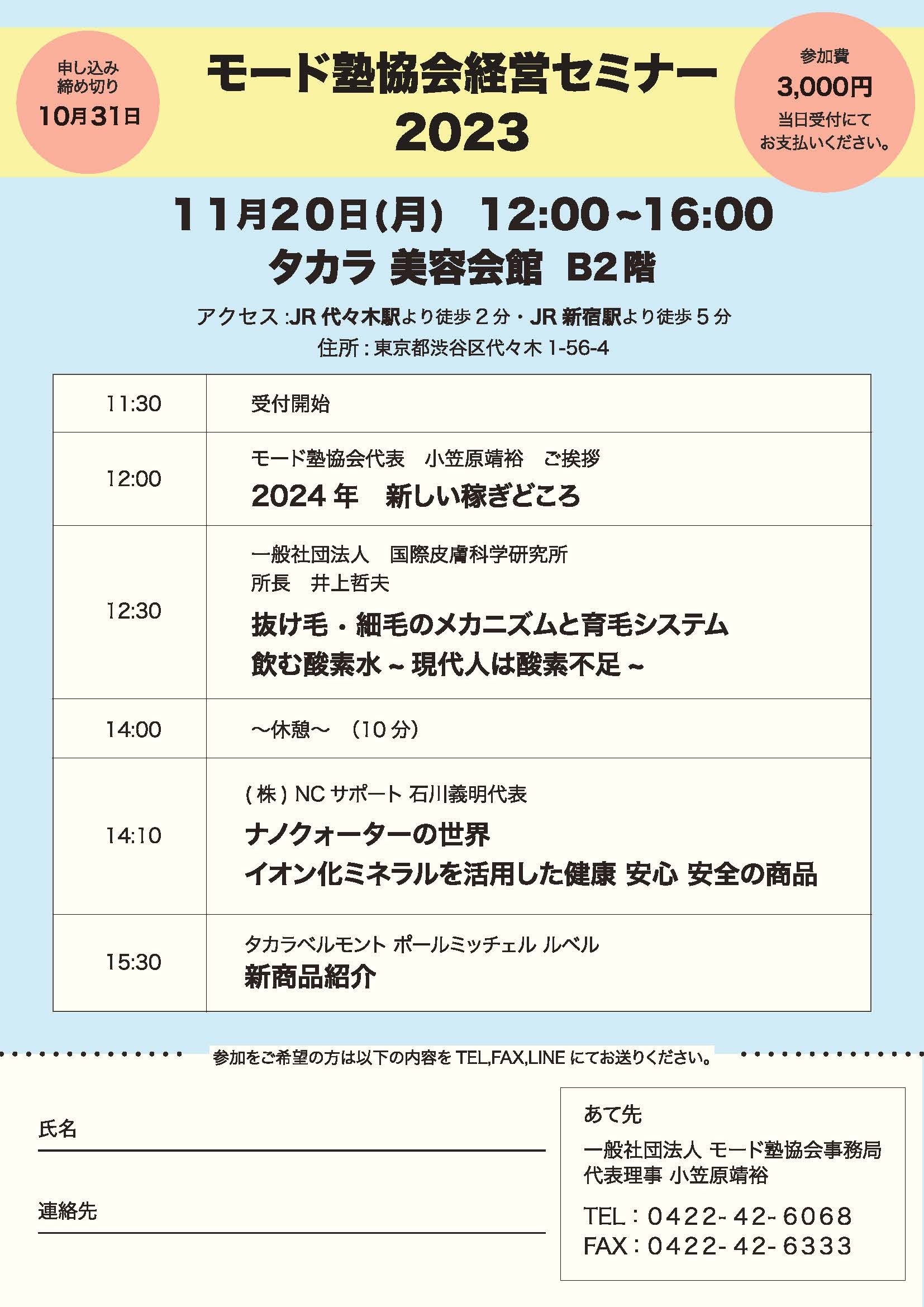 Home › 一般社団法人Gモード塾協会 › モード塾協会経営セミナー2023 モード塾協会経営セミナー2023 2023年11月20日(月) モード塾協会経営セミナーを開催致します。 よろしくお願いいたします。 関連記事 筋膜リリース講習会 モード塾協会 活動情報 モード塾 勉強会 モード塾セカンド 5/24 アモアプリーズ 講習会 モード塾セカンド モード塾協会経営セミナー2023
